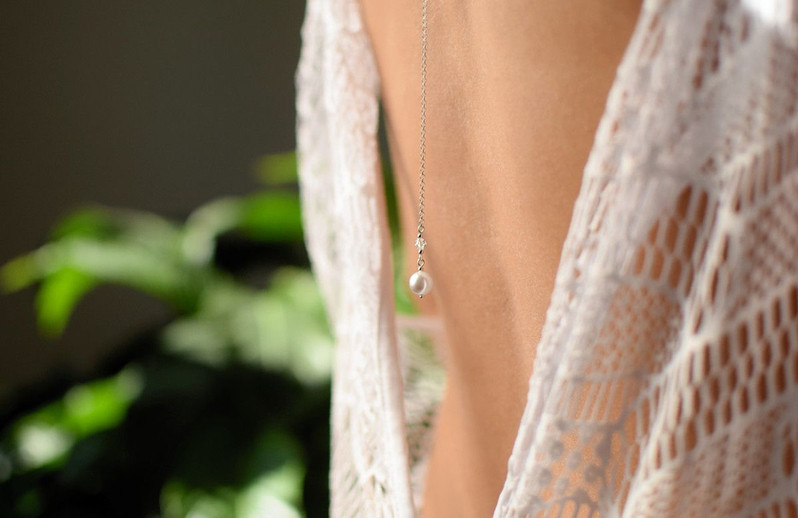 This jewellery is a trend that has appeared high in fashion and weddings to showcase your back exposed by wearing eye-catching jewelry, and our trending Backdrop Necklaces are enjoying unflagging popularity, transforming the most modest dress into a unique fabulous creation. Following the fashion trends, our Back-drop Necklaces, Body-chains or Web-style Body shining with pearls and crystals are the most luxurious accessories at the moment that will definitely make you stand out on your Big Day. By determining your style you will find it easy to decide which pieces from our exclusive decorations are designed for you. Timeless elegance, Bohemian flair, Vintage touch or Royal and Romance.